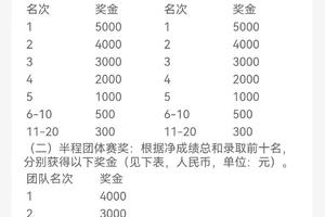 (三)上述所有奖项奖金均须征收20%的个人所得税,奖金于比赛日后10个工作日联系获奖选手进行发放。如无疑义,奖金打入运动员预留银行卡。